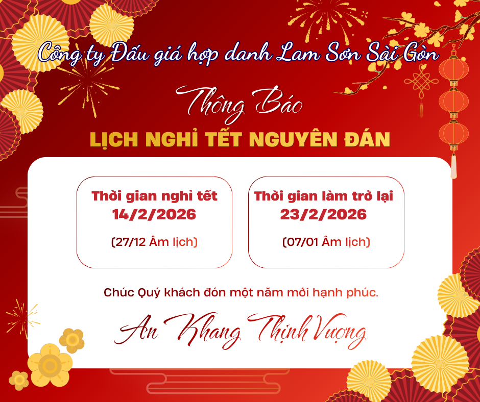 Công ty đấu giá hợp danh Lam Sơn Sài Gòn tổ chức phiên đấu giá tài sản sau: